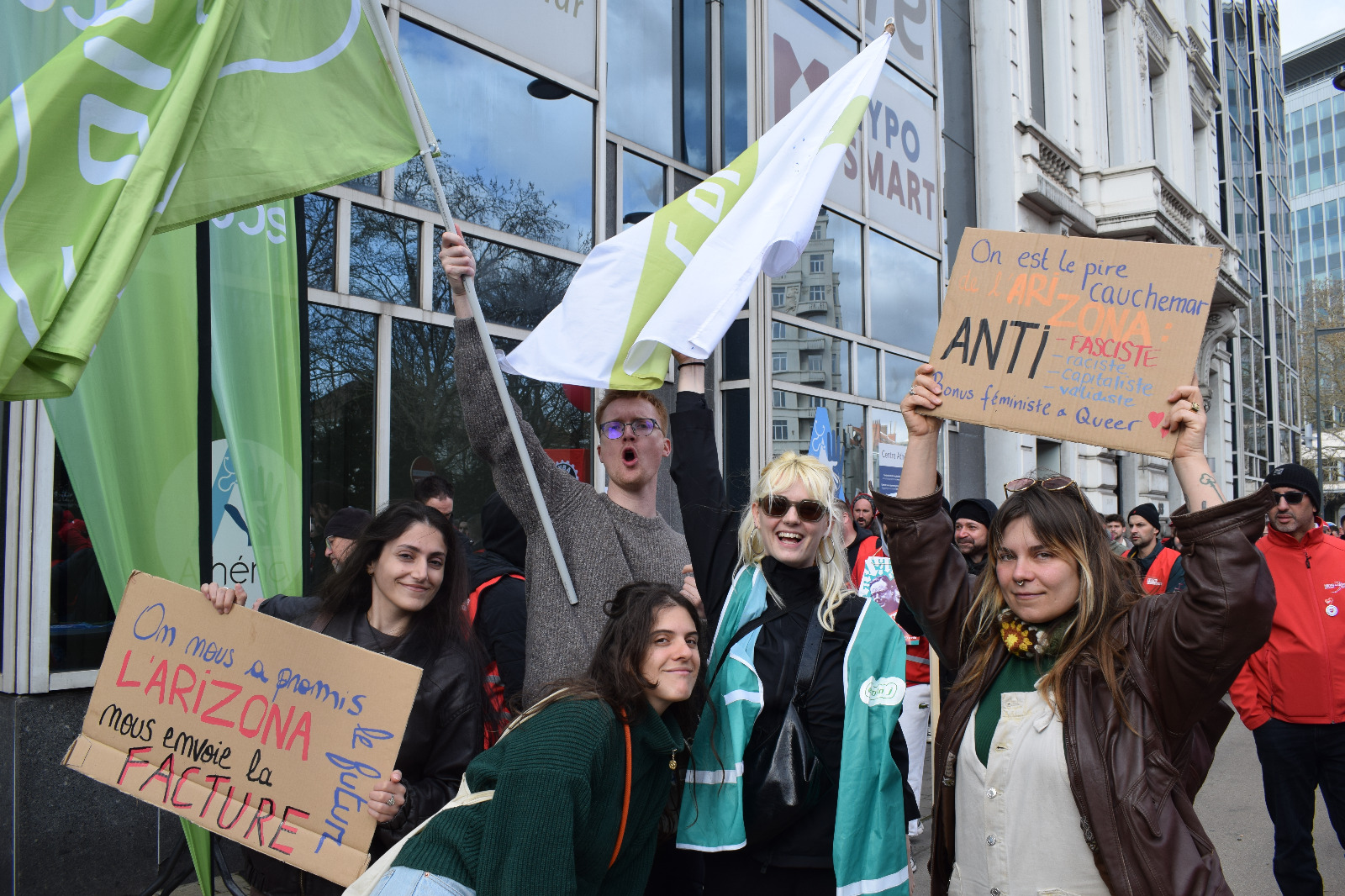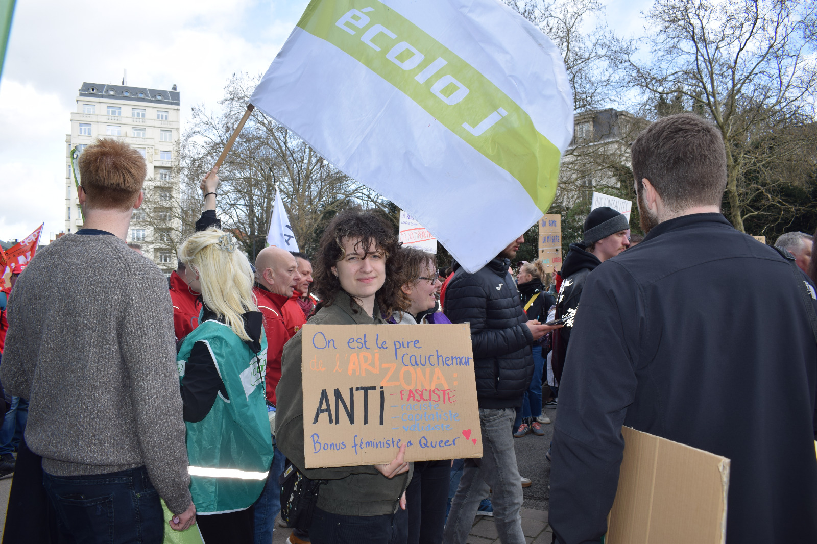 Ce jeudi 12 mars écolo j a rejoint le bloc jeune de la manifestation contre le gouvernement Arizona. Hausse du minerval, réforme des pensions, du travail, du chomâge, attaques sur les services publics,… nous étions 100.000 pour protester la boucherie sociale de ce gouvernement.