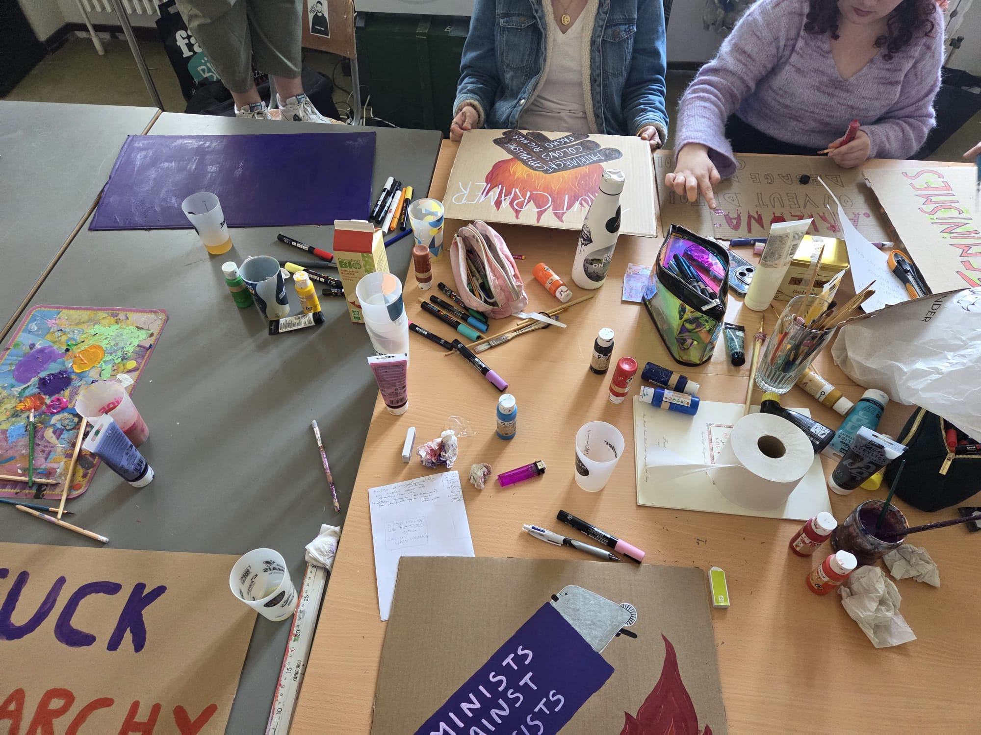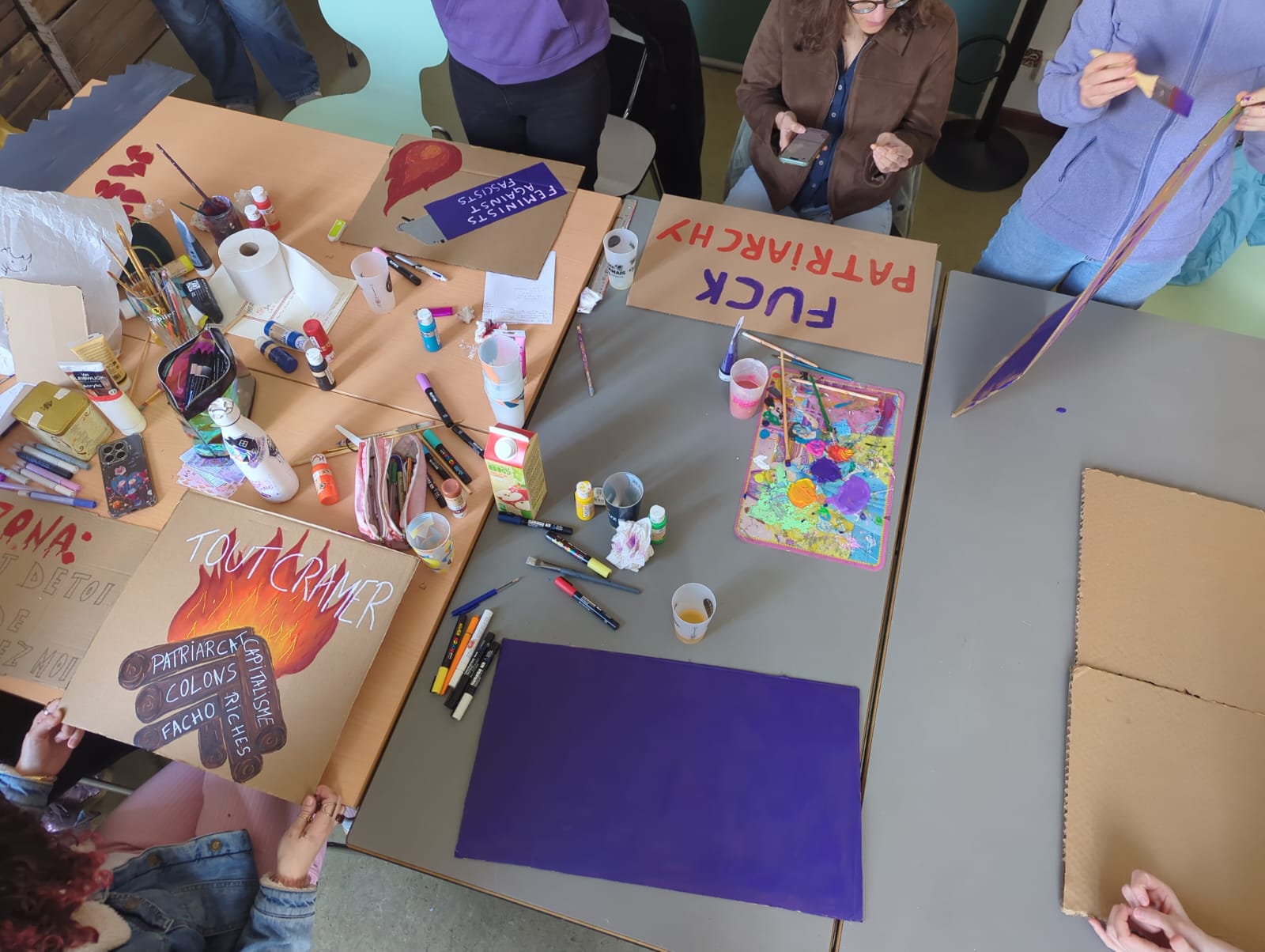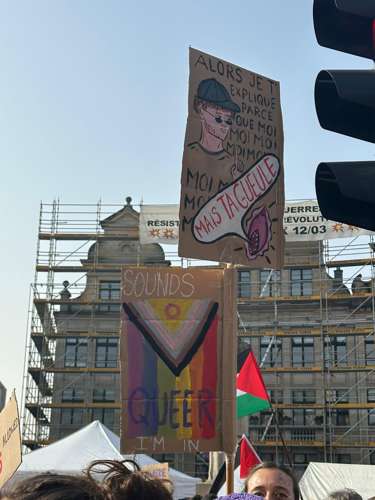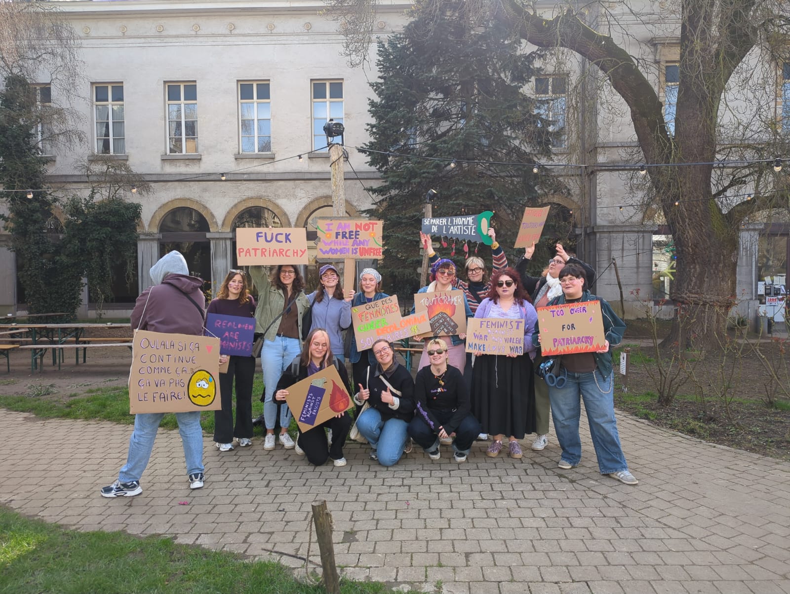C’était une belle journée en adelphité, le matin créativité, avec accueil de nouvelles personnes (à la fin on était 14!), discussions et une bonne playlist. Et l’après-midi, bain de foule, musique, chants et slogans sous le soleil, puis un petit café/jus post manif.