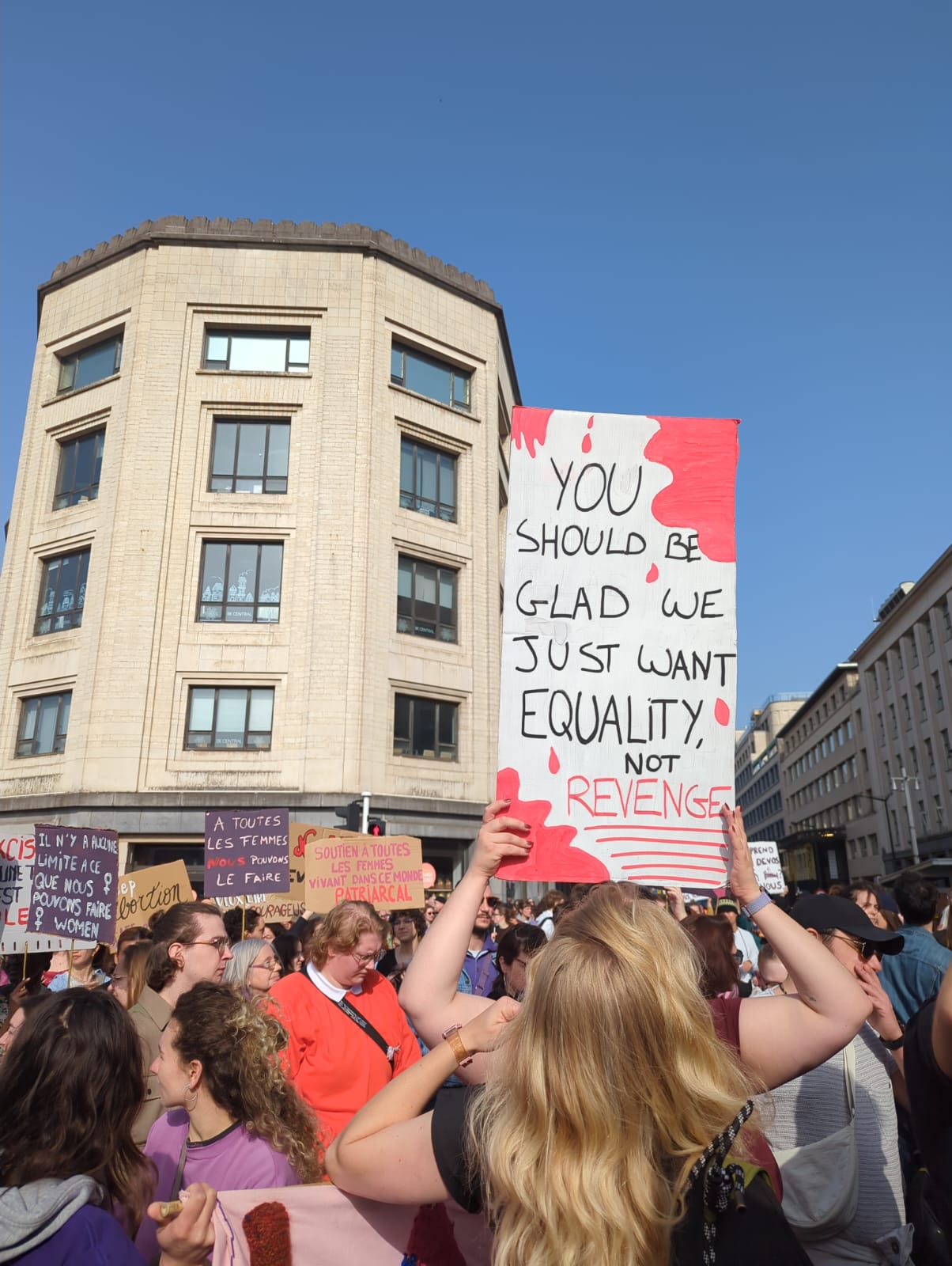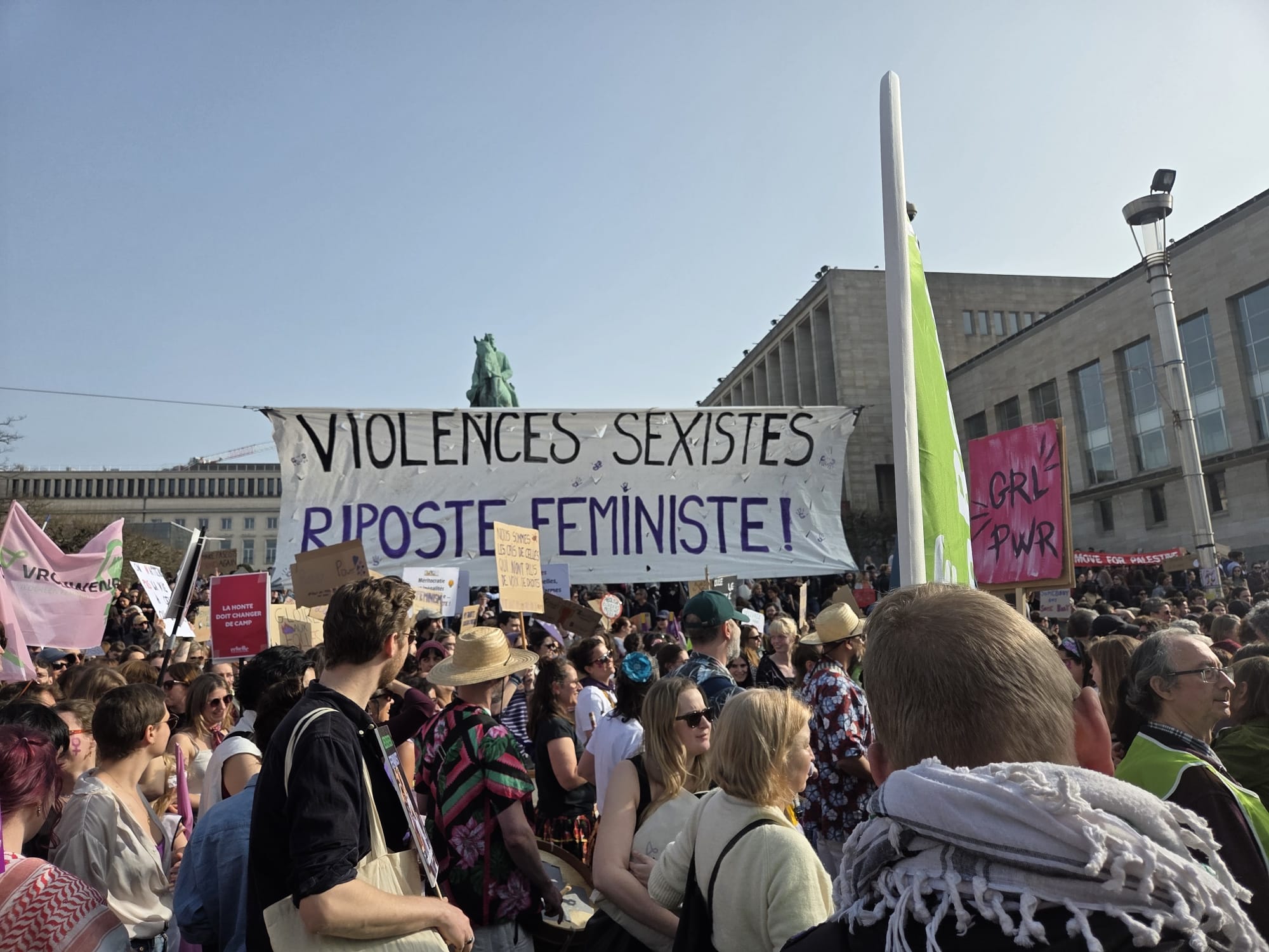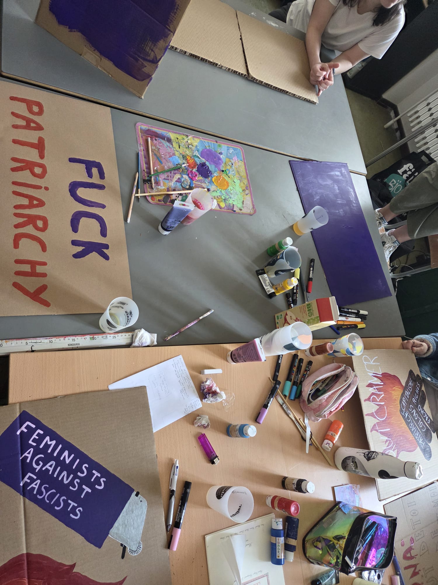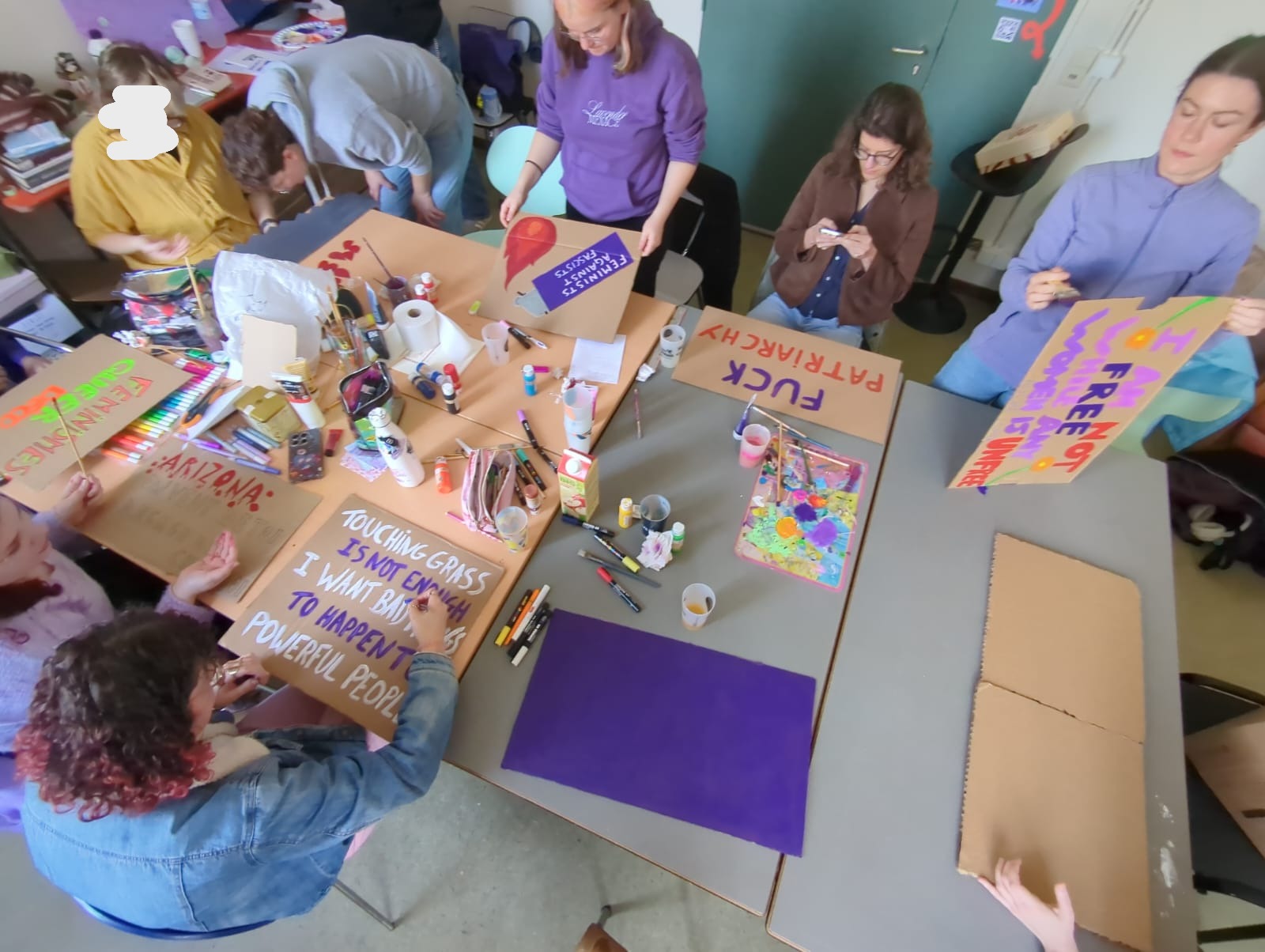 C’était une belle journée en adelphité, le matin créativité, avec accueil de nouvelles personnes (à la fin on était 14!), discussions et une bonne playlist. Et l’après-midi, bain de foule, musique, chants et slogans sous le soleil, puis un petit café/jus post manif.