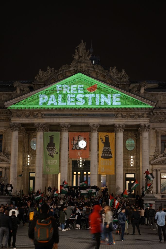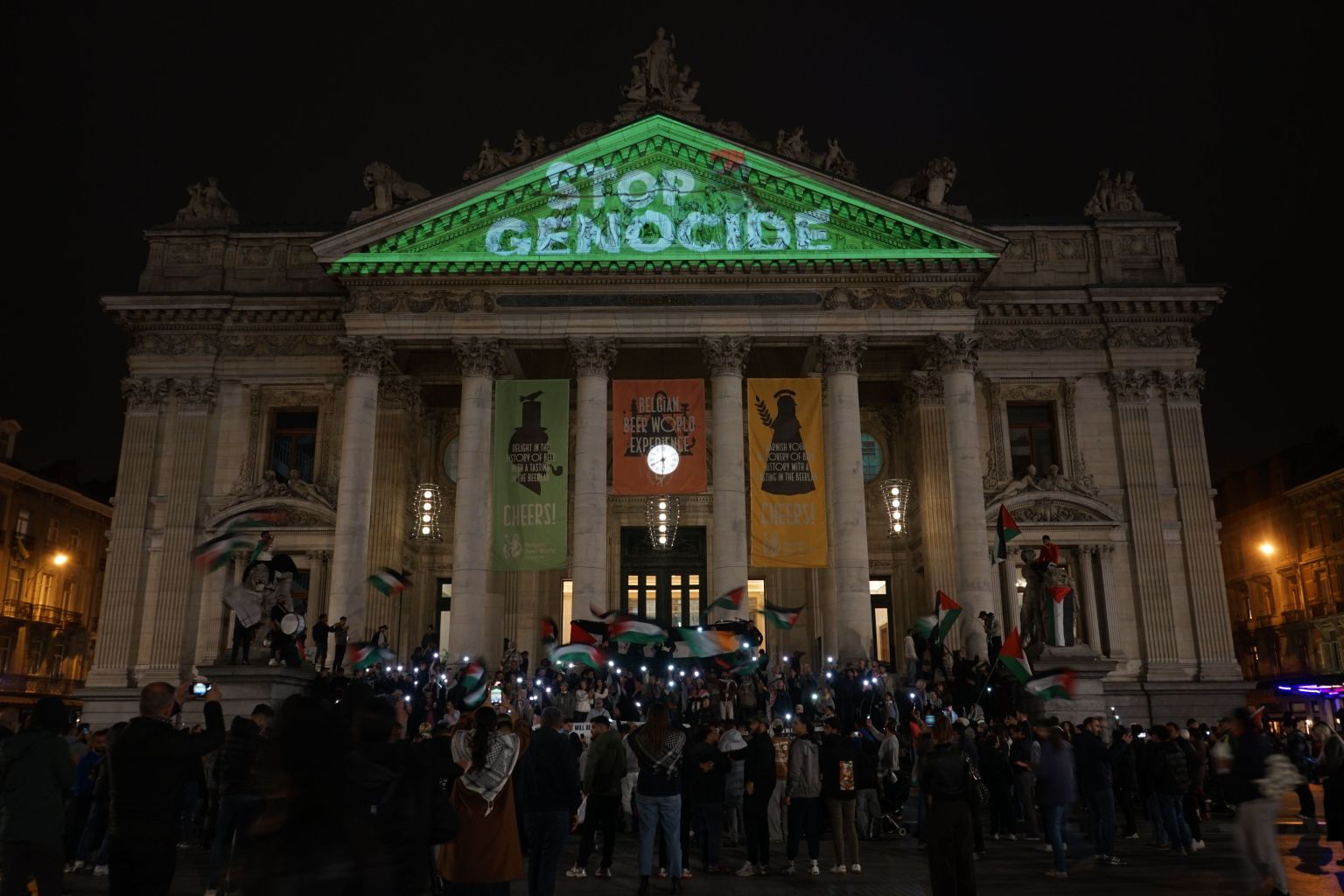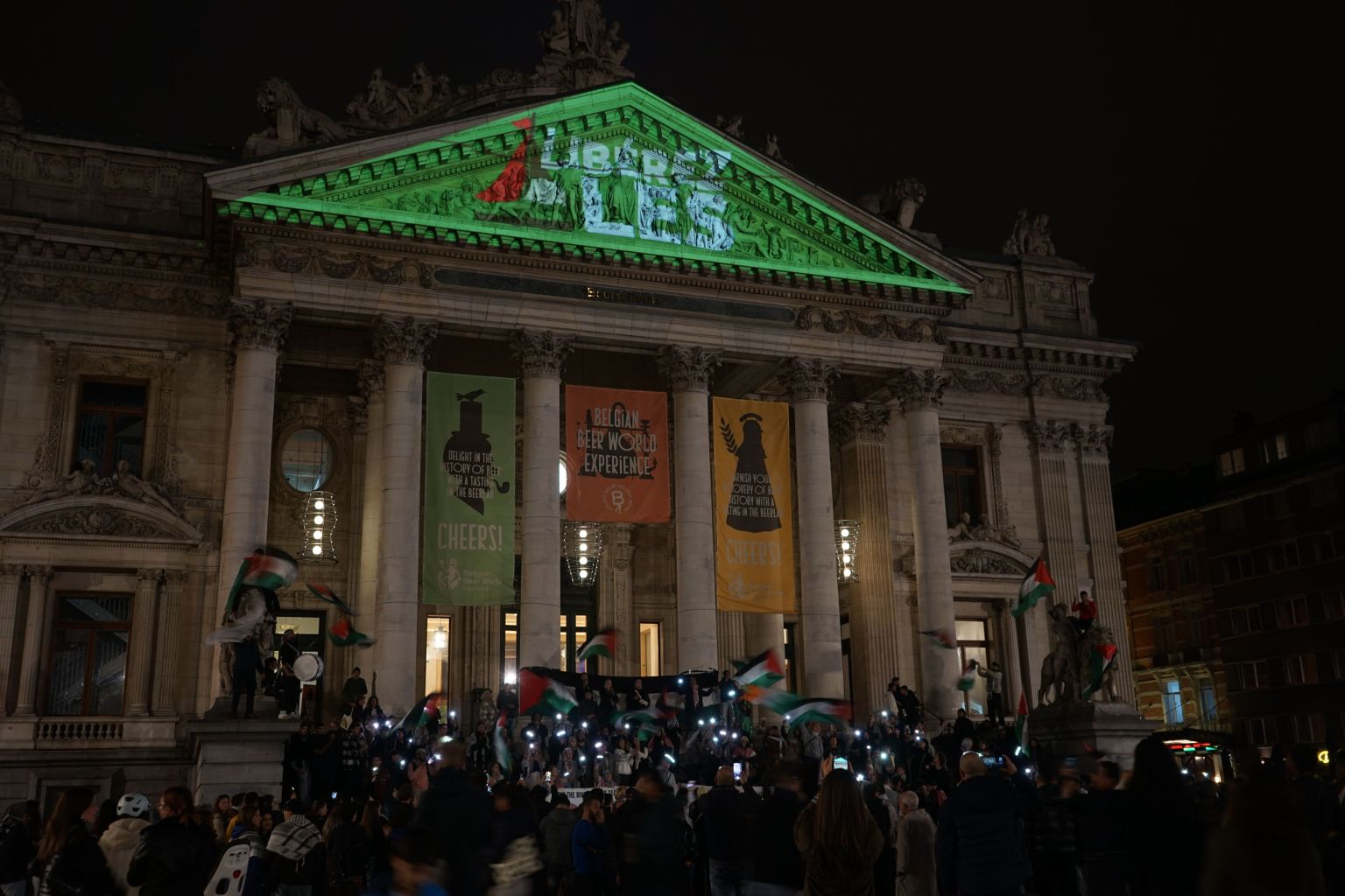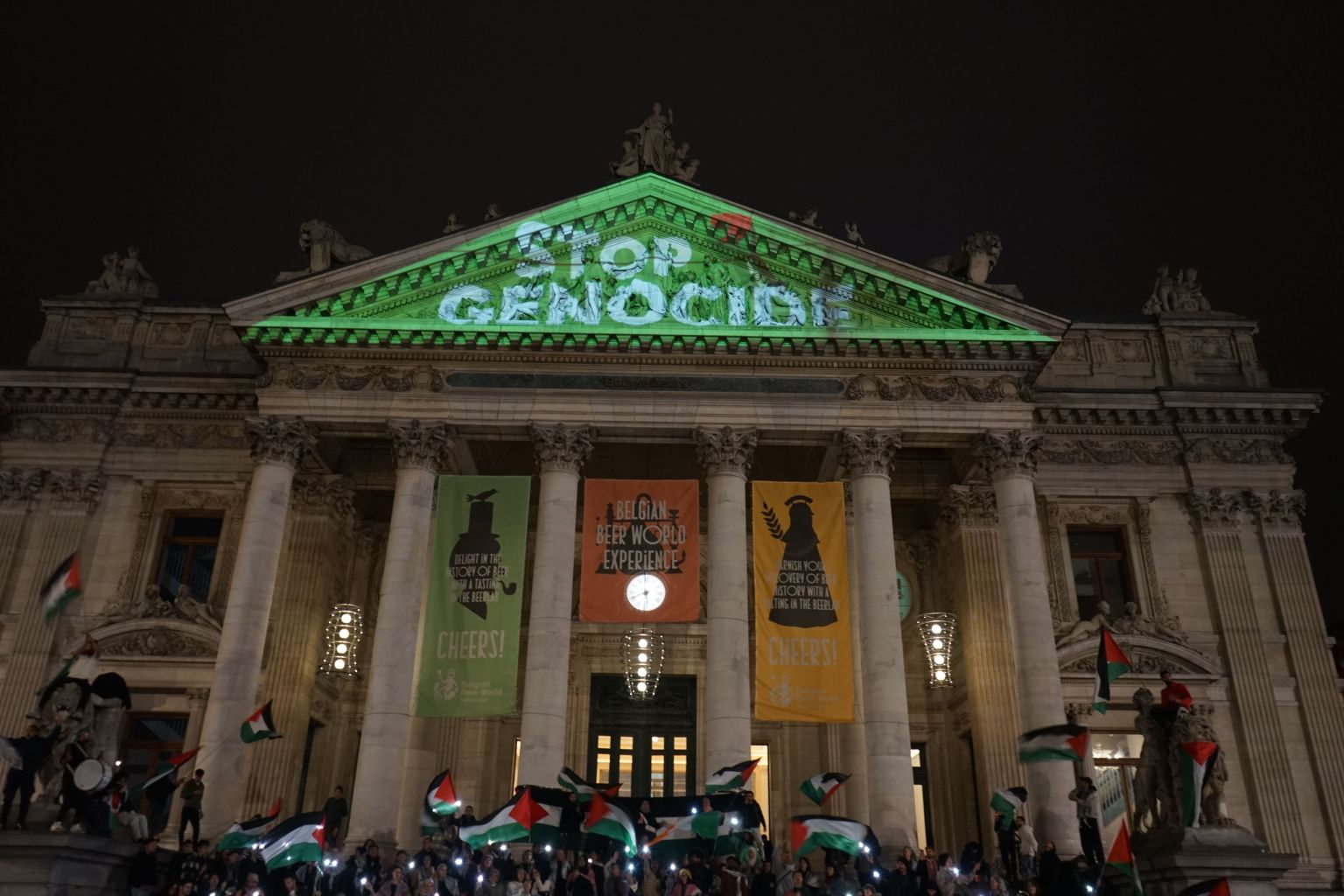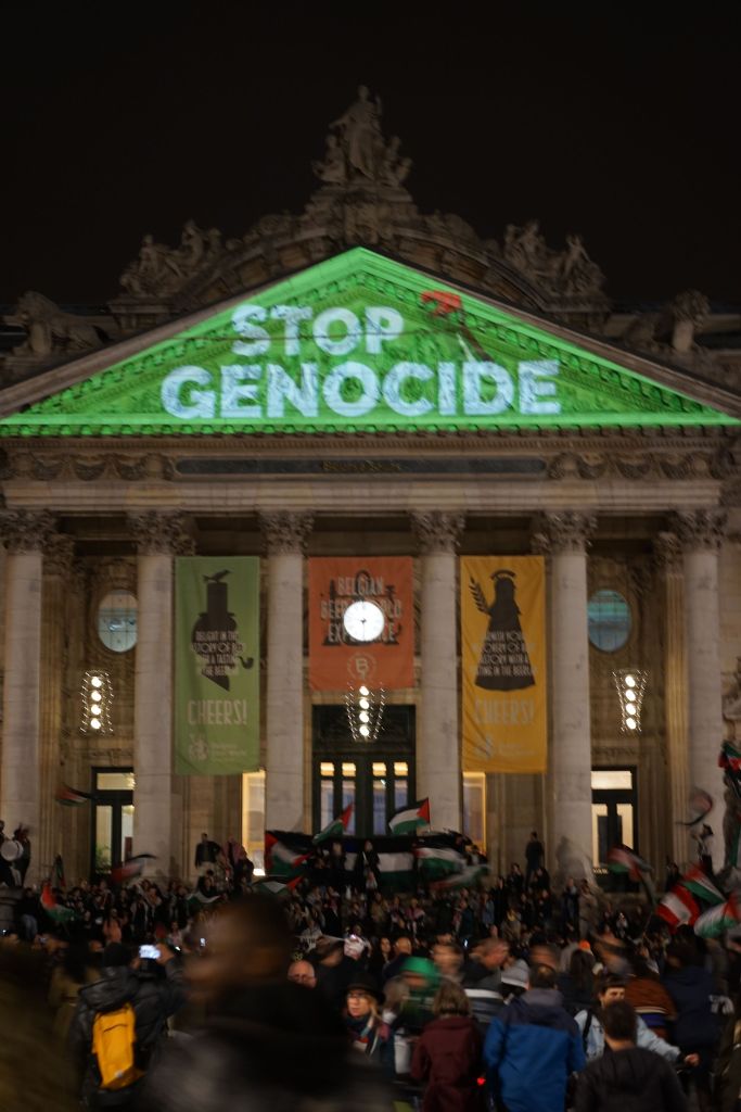 Ce vendredi 10 octobre soir, on projette un message sur la Bourse.