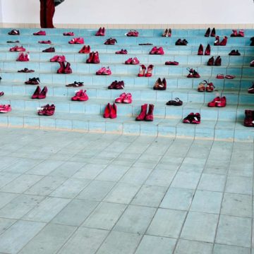 A Bruxelles, l’artiste nous a présenté son travail avec le soin d’offrir un temps avant et après la découverte de son œuvre pour discuter en petit groupe, partager, sensibiliser, informer sur les féminicides et ce qu’ils représentent en Belgique aujourd’hui, la non-considération des victimes du commissariat au jugement, les multiples épreuves pour celleux qui restent.
