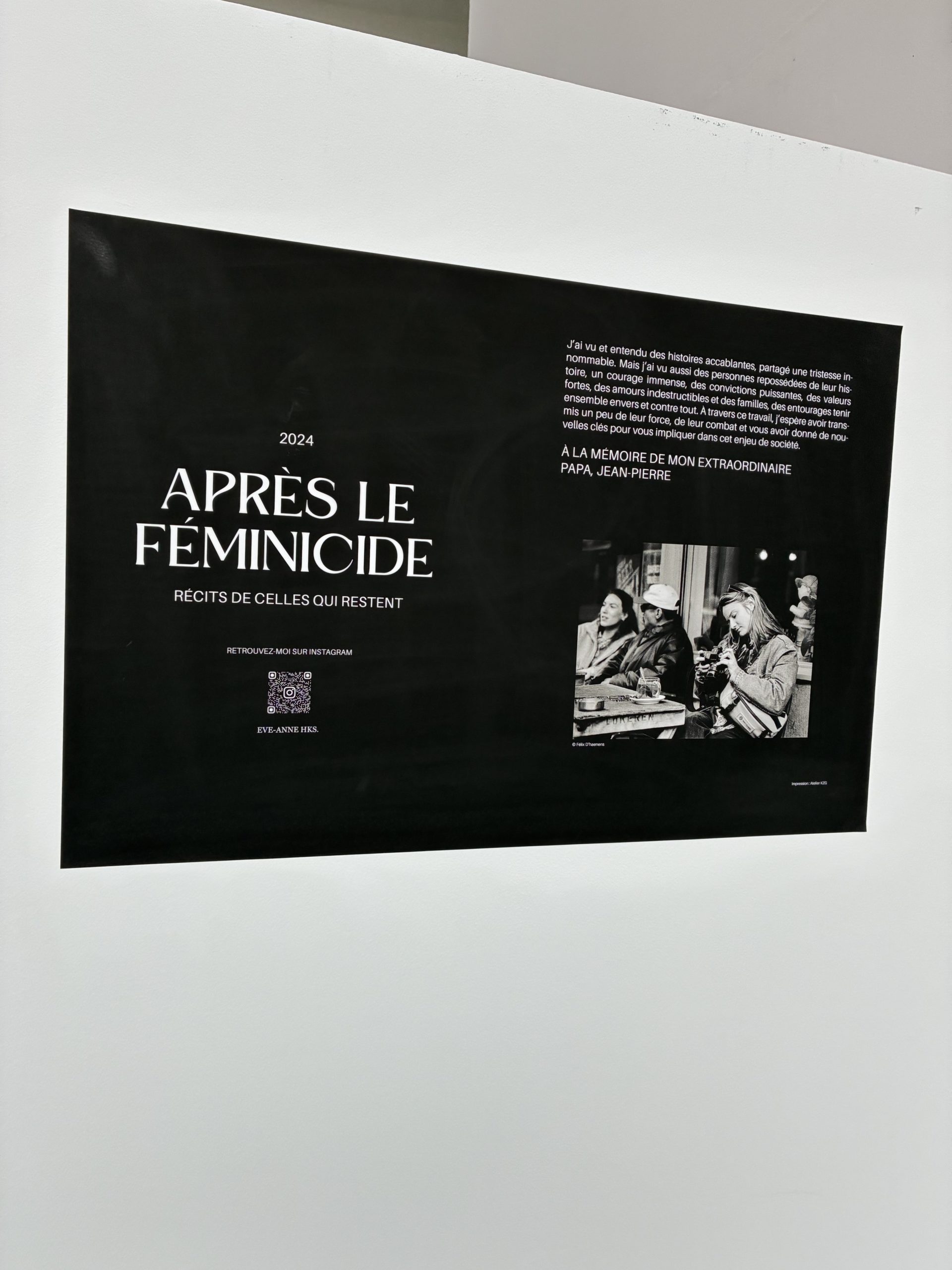 Cette exposition reportage est forte et invite chacun·e à agir face à cette horreur. Cette exposition aborde de manière sensible et percutante les féminicides et leurs conséquences. Elle offre un espace de réflexion et de mémoire, en donnant une voix et une visibilité aux proches des victimes.